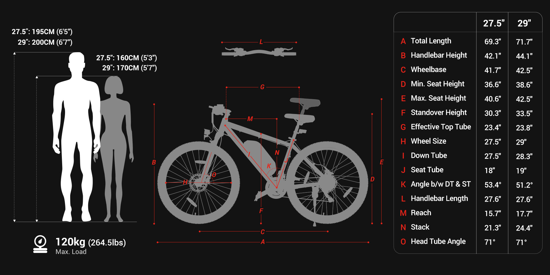 Carga máxima de la bicicleta: 120 kg (264.5 libras)