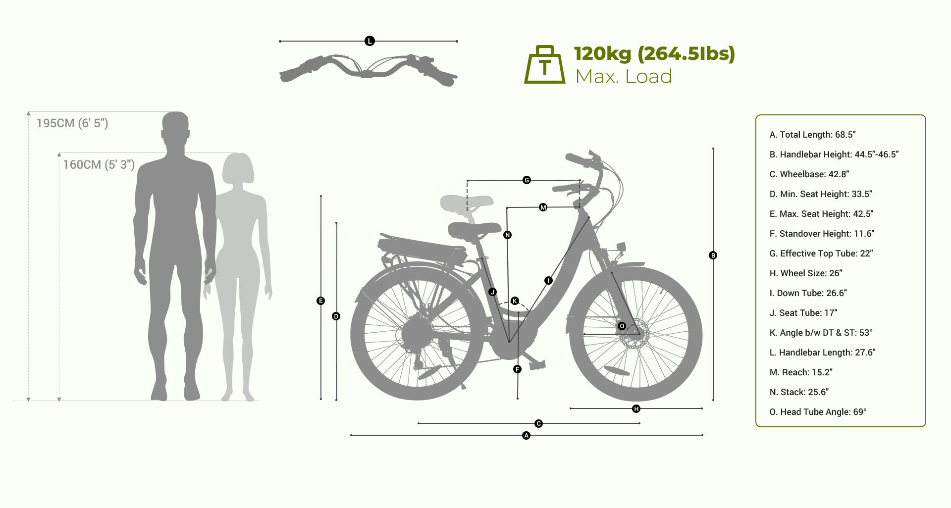 Taille recommandée du cavalier : 160-195 cm (5'3"-6'5")