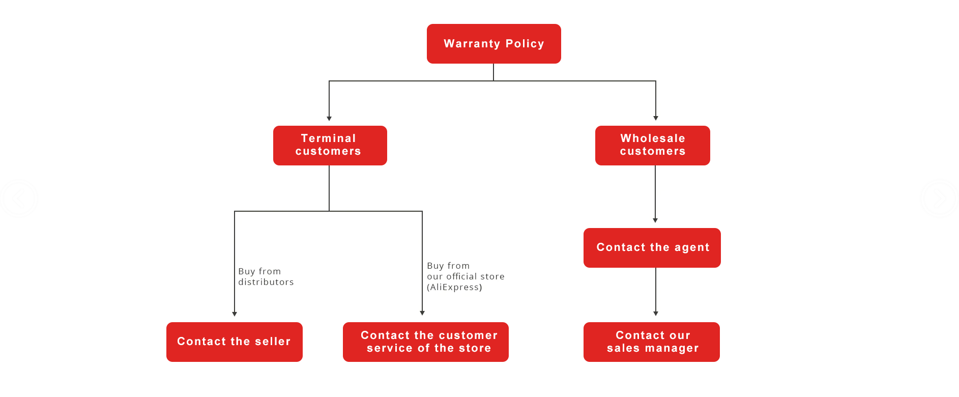Onze distributeurs, partners, verkopers en wederverkopers moeten after-sales services rechtstreeks aan hun klanten leveren. Als uw Eleglide-product een garantieprobleem heeft, neem dan contact op met de verkoper bij wie u het product hebt gekocht. U moet alle relevante bestelinformatie verstrekken , Zoals garantiekaarten, facturen, ontvangstbewijzen, enz.