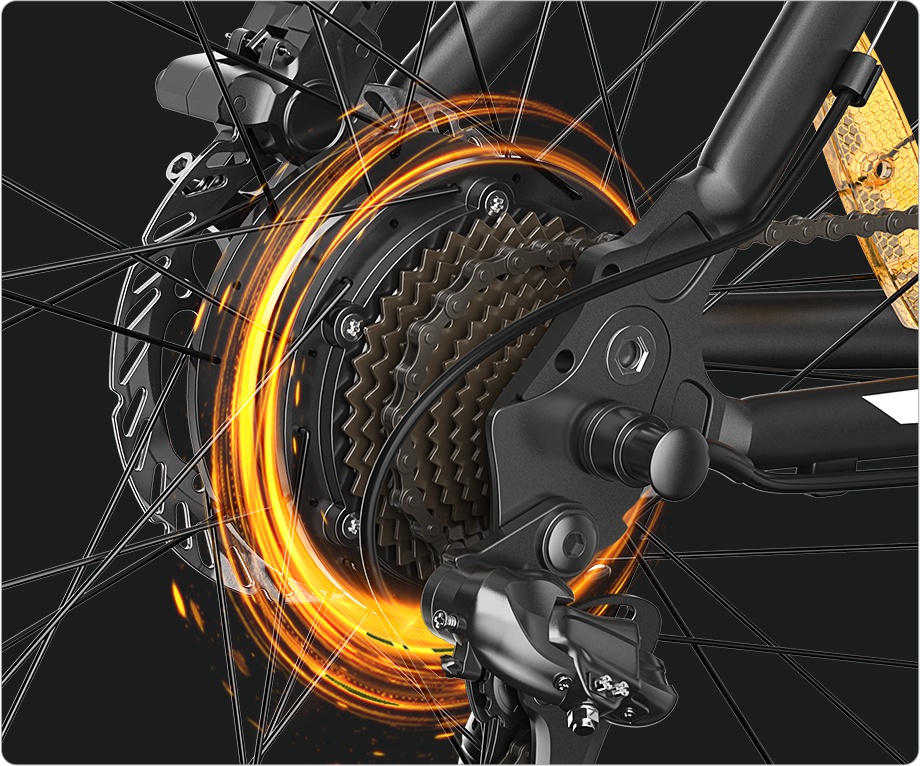 The brushless motor delivers 55N.m torque and enables a max speed of 25km/h. Enjoy a powerful and exciting ride.