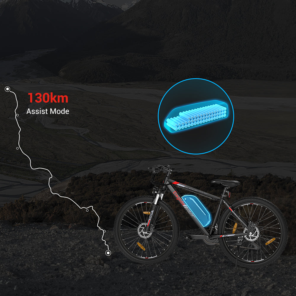 The large 561.6Wh removable battery supports up to 130km in assist mode, perfect for your long ride!