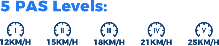 PAS Levels: 12/15/18/21/25km/h (Level 1-5)